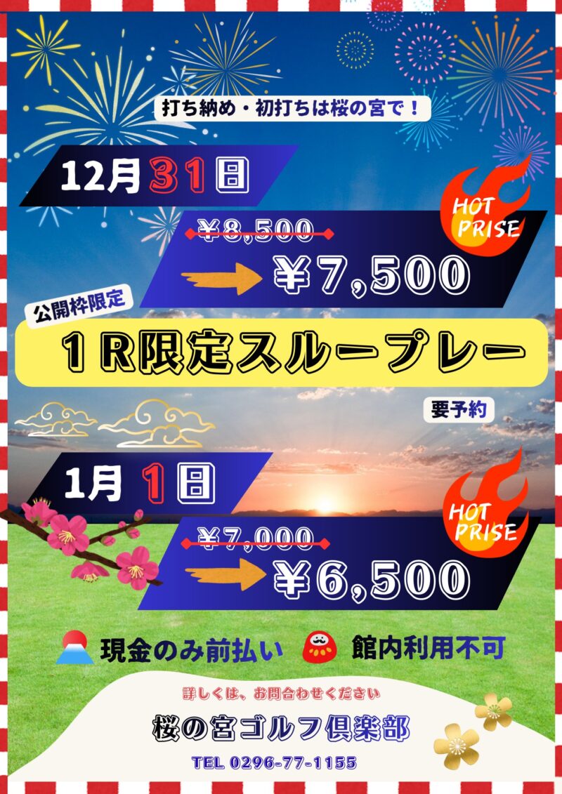 ※プレー代のお値引はできません。