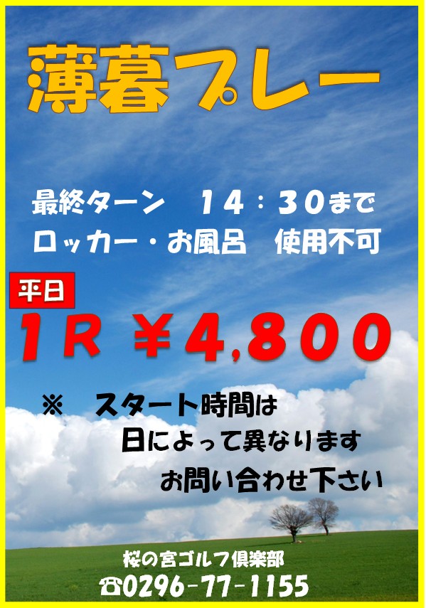 3/13まで薄暮プレー実施中です!!